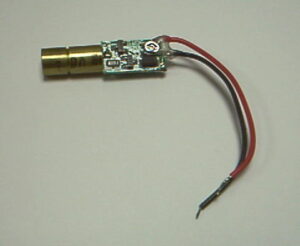 Miniature 650nm dot laser diode module with 6.5mm plastic housing, ideal for compact applications requiring precise visible red laser output.