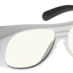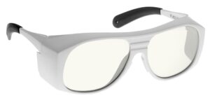 Large fitover laser safety glasses with soft comfort temples and superior temple coverage. Fits over Rx glasses or alone. Available in black or white. CE certified.