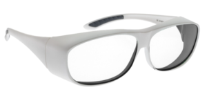 Medium-sized fitover laser safety frame with side-shields and adjustable temples. Fits comfortably over prescription glasses. Also available in white.